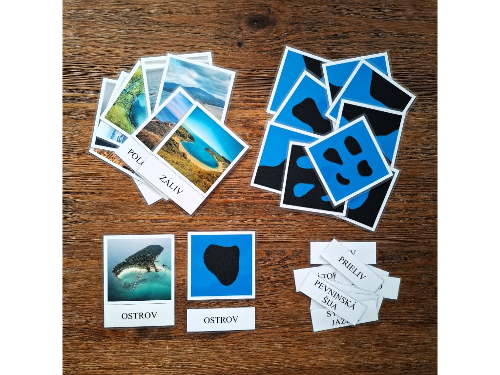 Aktivita obsahuje 30 kariet (10x karta s fotografiou a názvom, 10 x hmatová karta s použitým šmirgľovým papierom, 10x kartička s názvom). Karty s fotografiou majú rozmer 13x10 cm.