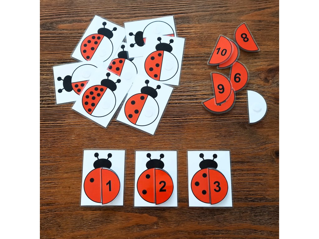 Aktivita obsahuje 10 lienok, rozmer zalaminovanej podkladovej karty je 9x8 cm. Dieliky sa priliepajú pomocou suchých zipsov.