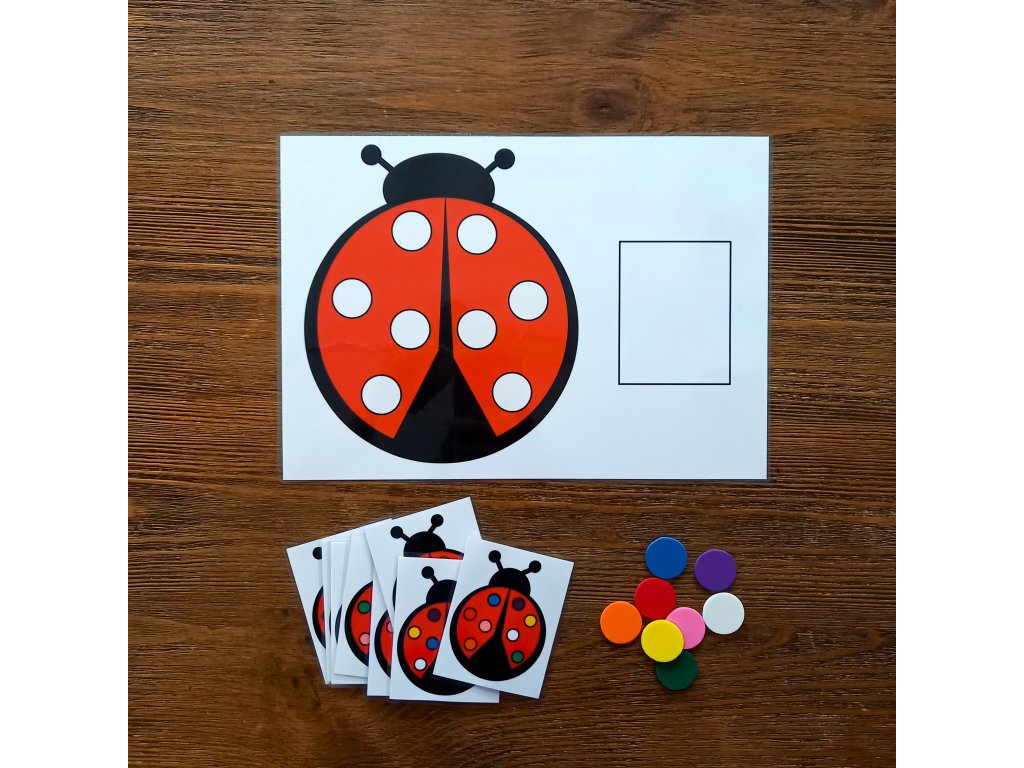 Aktivita obsahuje zalaminovaný podklad formátu A4, 8 zalaminovaných predlôh a kolieska vyrobené z machovej gumy
