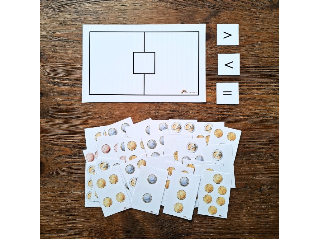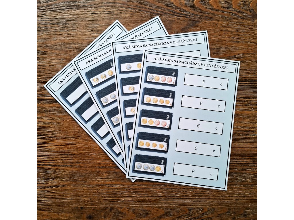 PDF súbor obsahuje 11 aktivít na vnímanie a porovnávanie sumy, euromincí, symbolov zahraničných mien. V súbore sa nachádza aj hra na obchod alebo hra “ja mám – kto má”. Súbor Vám zašleme na Váš mail.
