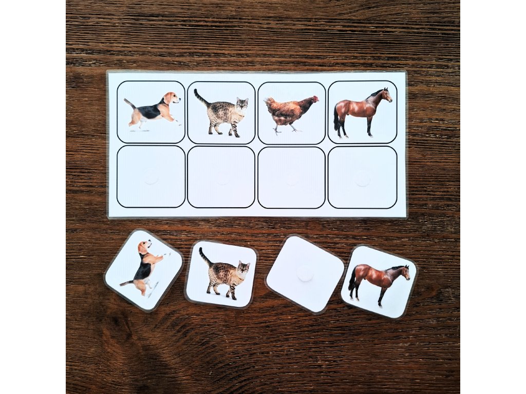 Aktivita obsahuje podklad s rozmerom 30x15 cm, kartičky majú rozmer cca 6x6 cm. Zalaminované.